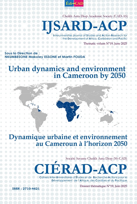 This special thematic edition of CIERAD-ACP examines the evolution of urban space and its environmental implications in Cameroon by the year 2050. Can we have sustainable environment cities? The edition. focuses on demographic shifts, functional transformation, spatial expansion, and government interventions analyzing how these factors reshape urban form and environmental resilience and how these environmental factors affect the urban sphere. The works address planning and governance challenges, documenting the emergence of urban inequalities, resource stress, and ecological disruptions. As these indicators keep changing, spatial signatures are seen on and in the urban environmental space. These shock waves shall be seen on the environmental fabric of most of our cities by 2050. Through this lens, the book investigates the evolution of the dynamic interaction between rapid urbanization and environmental dynamics and to see how Cameroonian cities should be Sustainably managed- green cities by 2050.